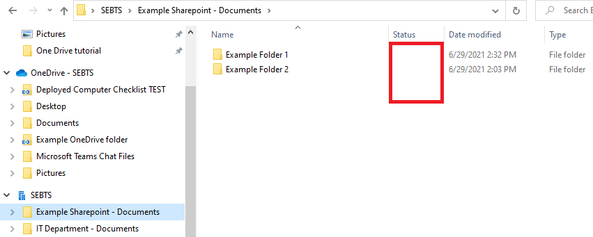 To make sure the sync has stopped properly, open the folder through your file explorer and make sure the “status’ column is empty: